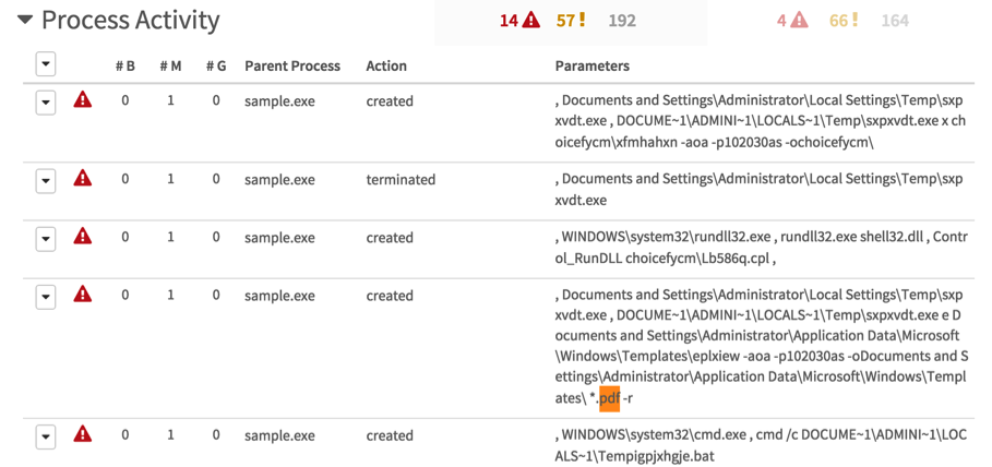 AutoFocusの分析の以下のスクリーンショットからわかるように、Bag.7zにはランダムに名前が付けられ、%APP_DATA%\microsoft\windows\templatesというフォルダーに配置されます。その後、Bag.7zは以下のコマンドで解凍されます。