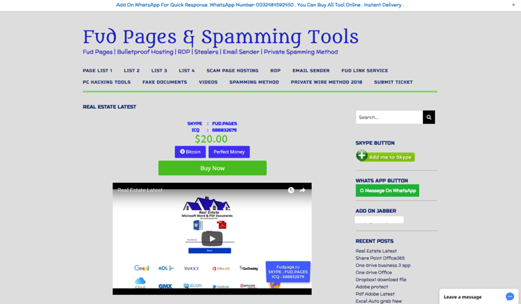 fudpageにはいくつかの連絡先情報がリスト化されていて、この情報からは、地下フォーラムで悪意のある製品を販売、配信および取引している地下のペルソナに最終的にたどりつけます。