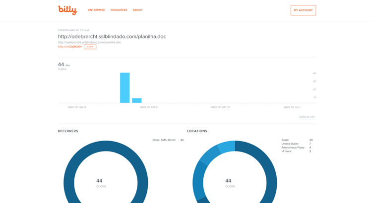 犯罪的攻撃は、このグループにとって新しいものではなく、いくつかは、Gorgon GroupメンバーのSubaatに関する以前のブログで取り上げられています。現在のキャンペーン中に、Gorgon Groupの犯罪活動は2月中旬から現在までで132,840のBitlyクリックを得ました。大規模に複数の業界を横断的に標的としているため、犯罪活動中、標的に関する情報はほとんどありませんでした。