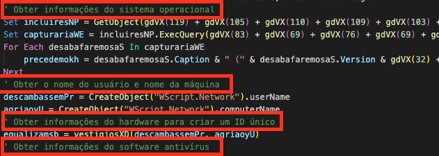 Furthermore, the attacker left other comments that revealed the script’s functionality in Portuguese (such as “obtain information on antivirus software,” shown in Figure 5).