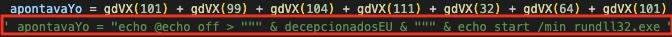 The first and second stages of this campaign have several different versions, mainly varying in size and filenames. Overall, both use multiple obfuscation methods such as junk variables and indirect ASCII conversions to bloat the original code to a significant size. This type of obfuscation hinders the work of both defenders and analysts, by obscuring the script’s main functionality.