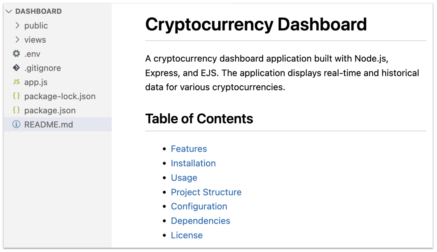 If the targeted victims applied for a JavaScript role, they might instead encounter a “Cryptocurrency Dashboard” project, similar to the example in Figure 6 below.